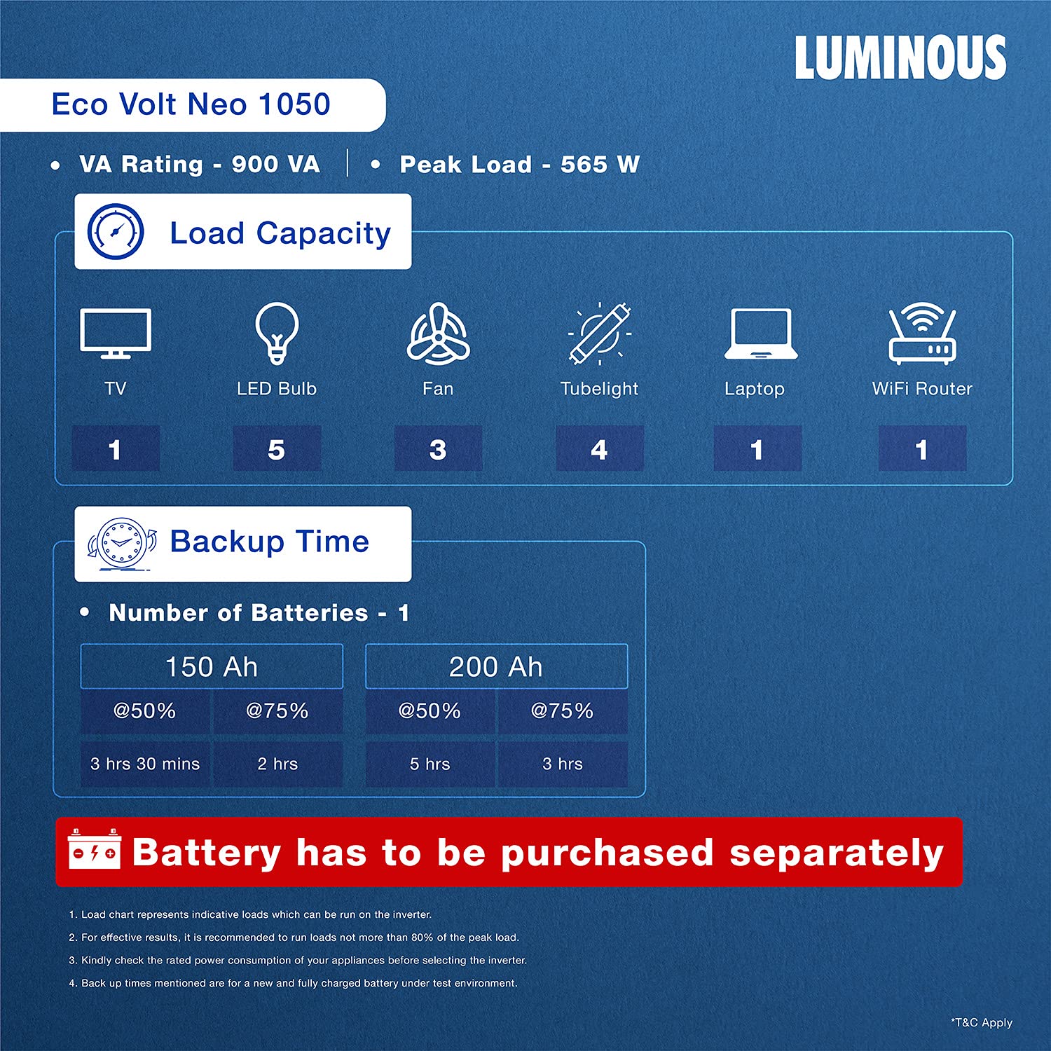 - LUMINOUS ECO VOLT NEO 1050 - 900VA/12V SINEWAVE INVERTER